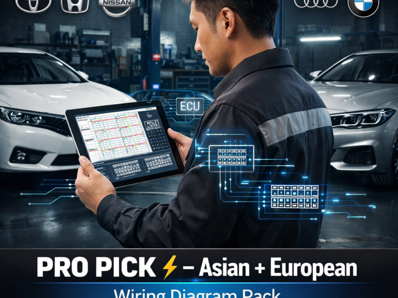 Comprehensive automotive wiring diagrams and ECU pinout reference package. Asian + European Wiring Diagram Pack covers multiple vehicle brands with detailed electrical schematics.