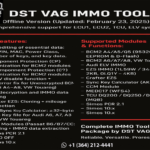 Professional IMMO OFF software for ECU immobilizer removal and reset. DST VAG IMMO TOOL – Offline IMMO & Data Editing Suite supports multiple vehicle brands and ECU types. Download instantly after purchase.