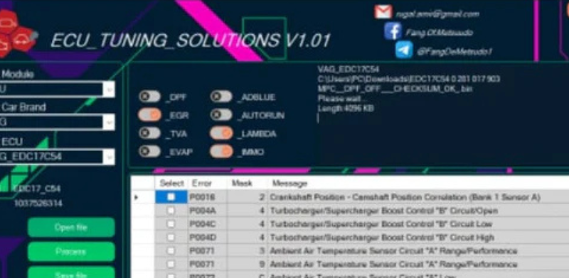 ECU-TUNING SOLUTIONS V1.01 is a powerful all-in-one software for professional ECU tuning. It supports IMMO, DTC, EGR, DPF, and AdBlue adjustments, with advanced features for safe and precise engine optimization. Compatible with a wide range of vehicles, it includes tools for editing, flashing, and performance calibration.