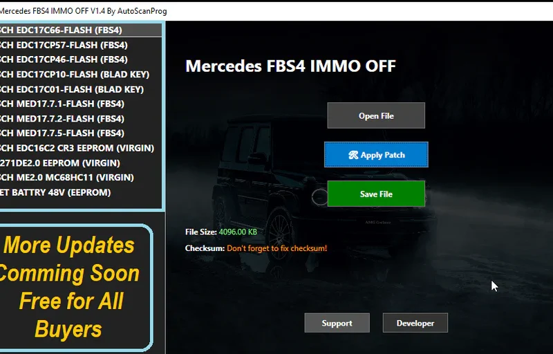 Professional IMMO OFF software for ECU immobilizer removal and reset. Mercedes_IMMO OFF_(FBS4) and MB_ECU_Renew supports multiple vehicle brands and ECU types. Download instantly after purchase.