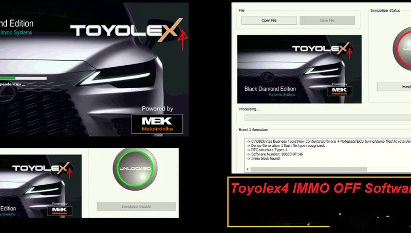 Professional IMMO OFF software for ECU immobilizer removal and reset. Toyolex4 BDE IMMO OFF 2024 for toyota/lexus immo off supports multiple vehicle brands and ECU types. Download instantly after purchase.