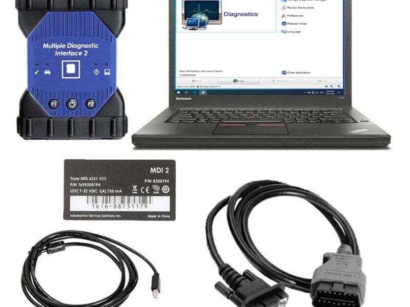 Professional GM diagnostic interface with latest software. V2024.09 MDI 2 Diagnostic Tool for GM with Wifi Software Pre-installed on Lenovo T450 Laptop 8GB Memory Ready to Use supports all GM vehicles for diagnostics, programming, and module configuration.